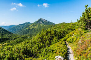 Chodník s výhľadom na nádhernú letnú horskú krajinu.
